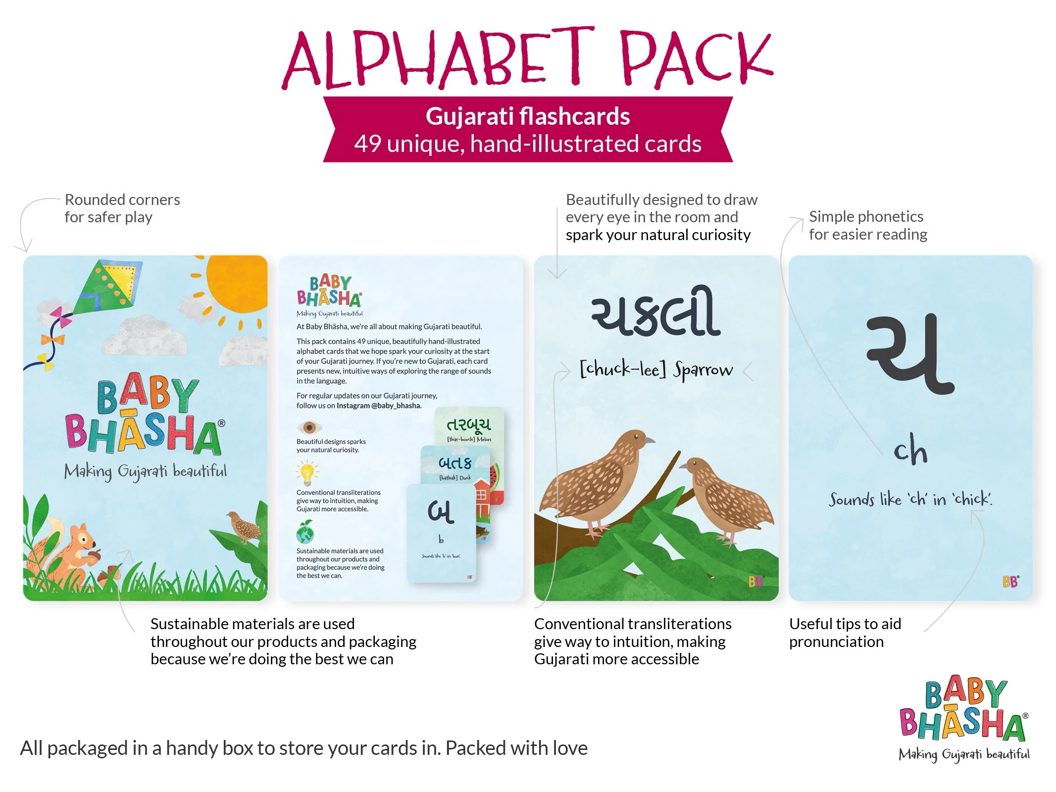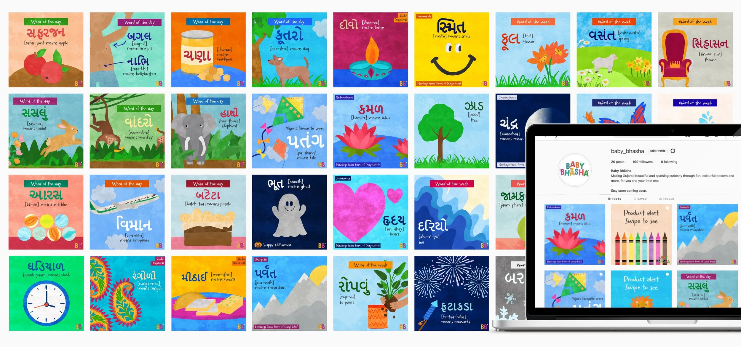 “Really good visual cues to help out son (and myself!) learn Gujarati! What a great product and beautiful illustrations.”
